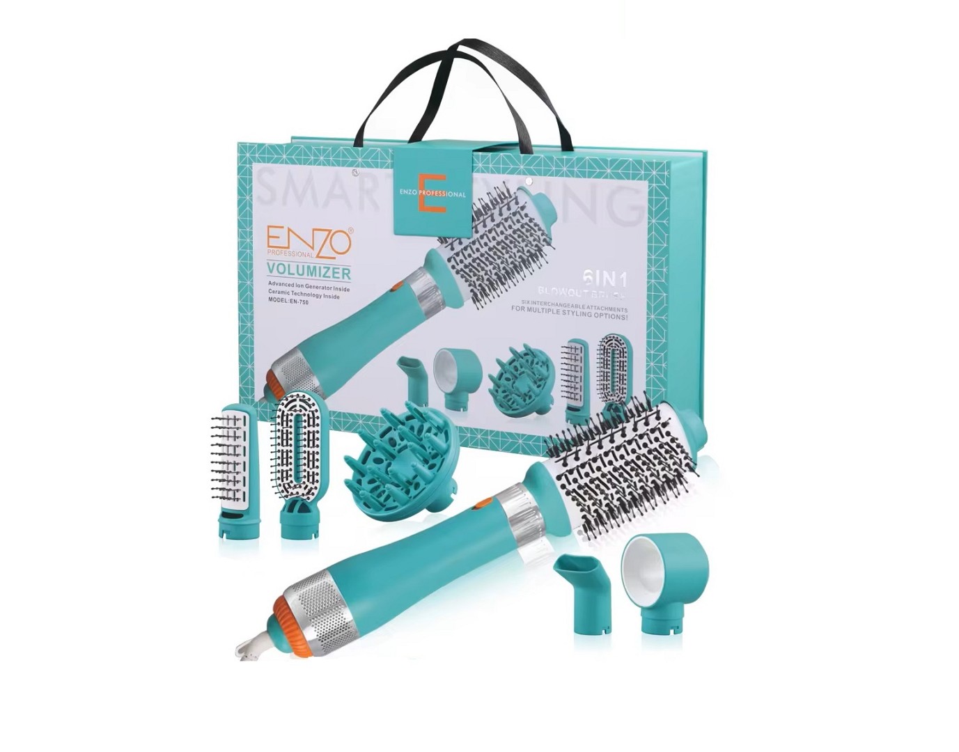 Brosse Soufflante Enzo - EN 750 - 6 en-1 - Technologie ionique - Accessoires interchangeables .