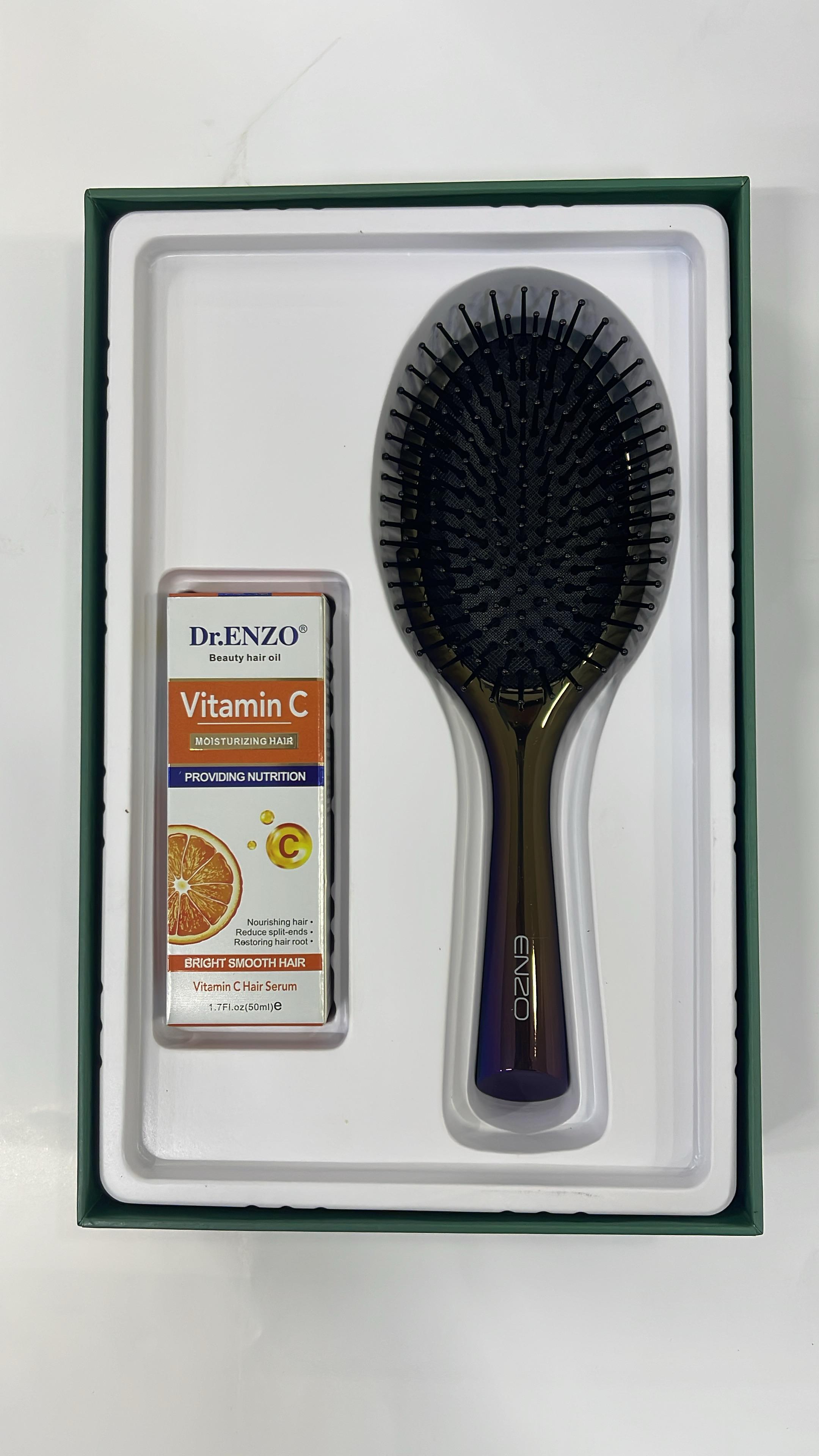 ENZO EN-4103 Pack Lissage & Soin – Brosse Électrique Lissante + Sérum à l’Huile de Coco Dr. Enzo