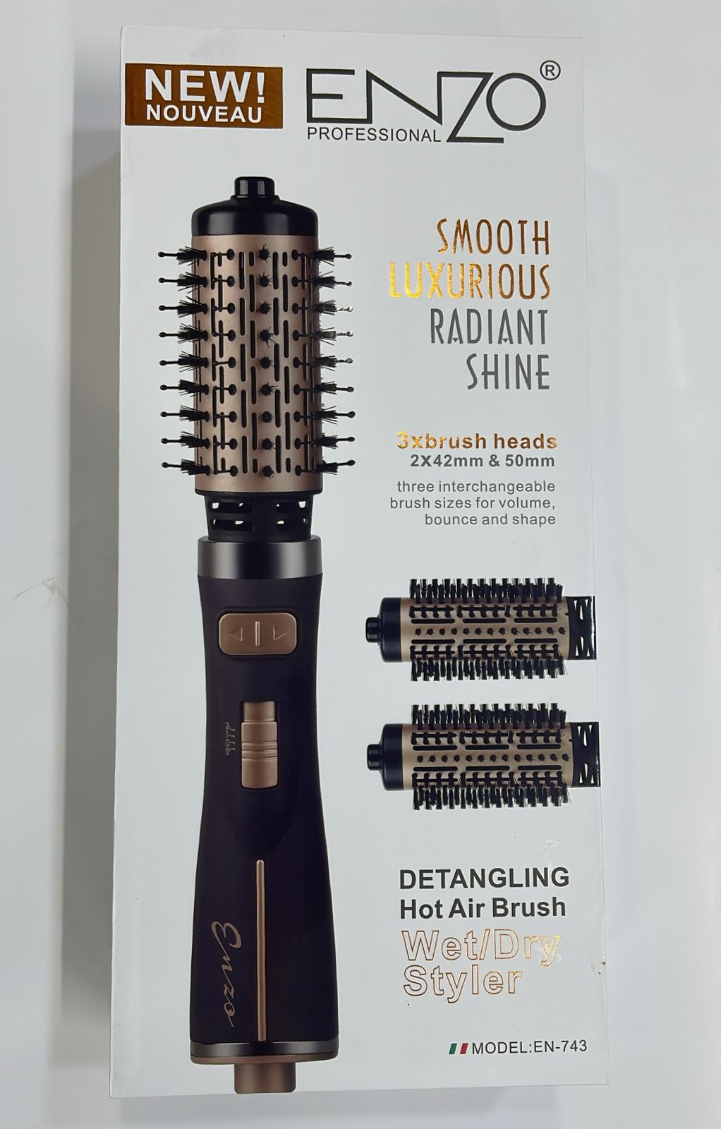 ENZO EN-743 – Brosse Rotative Professionnelle 3-en-1 : Sécher, Lisser, Volumiser