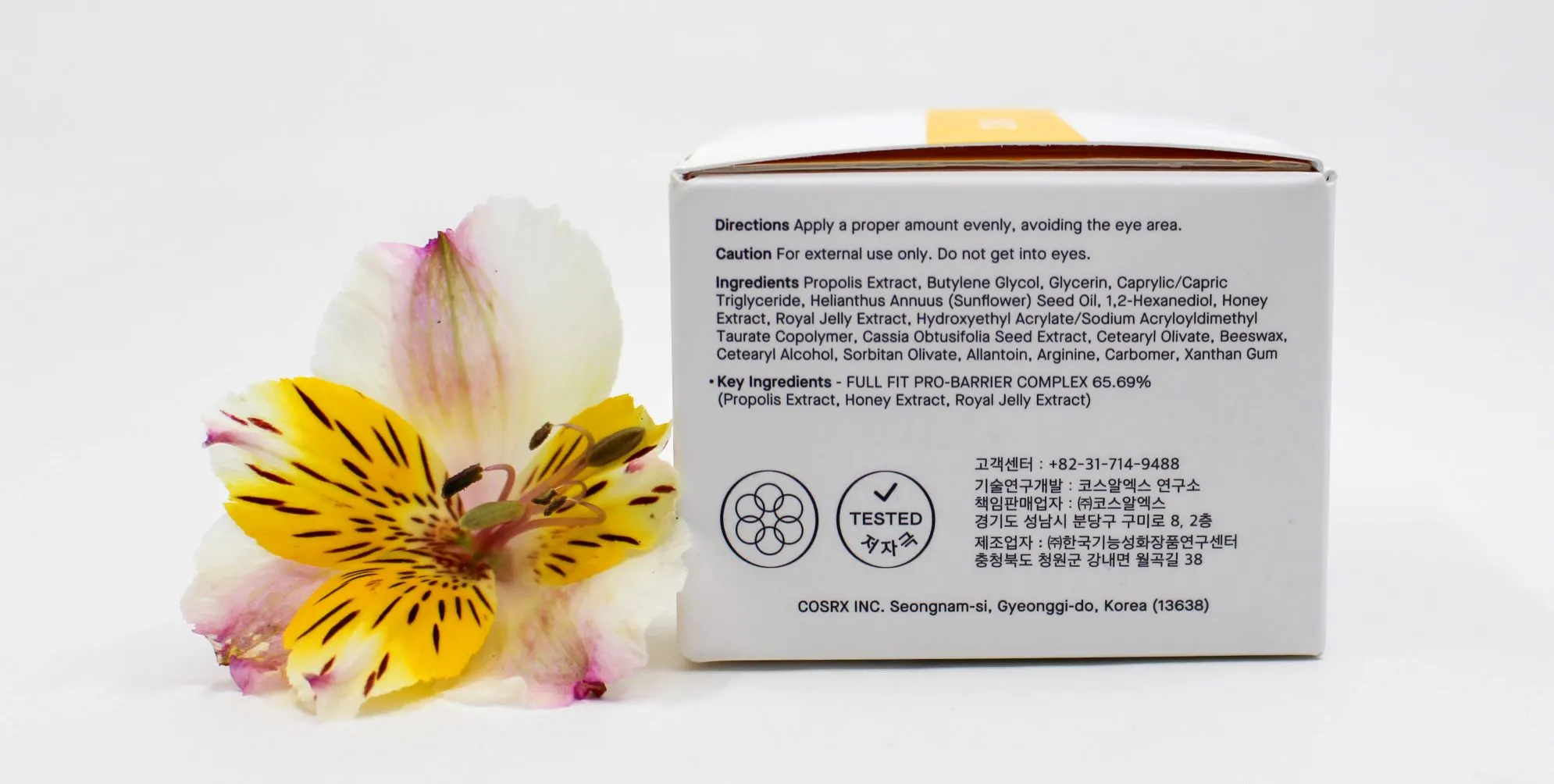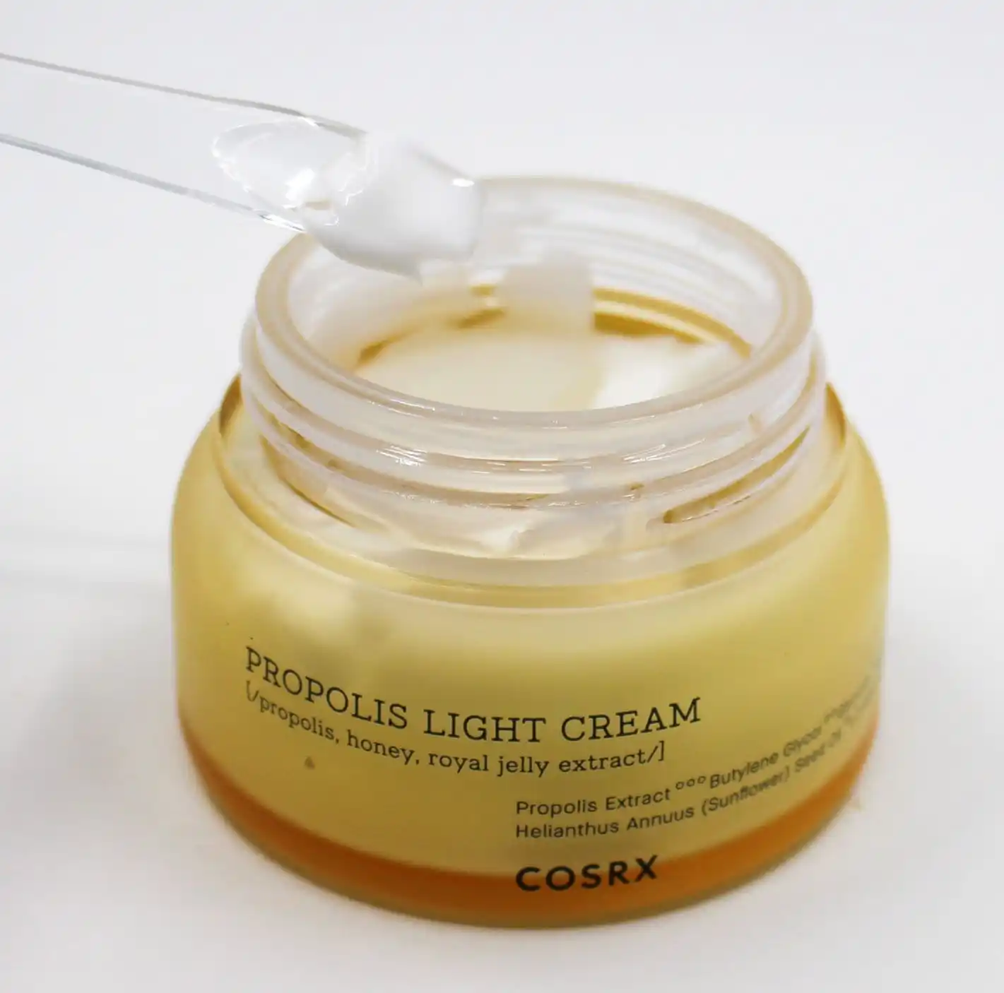 * المكونات الأساسية: مستخلص البروبوليس، الجلسرين، ثلاثي الجليسريد كابريليك/كابريك، زيت بذور دوار الشمس، مستخلص العسل، الهلام الملكي، الألانتوين، الأرجينين، ومستخلصات نباتية مغذية.