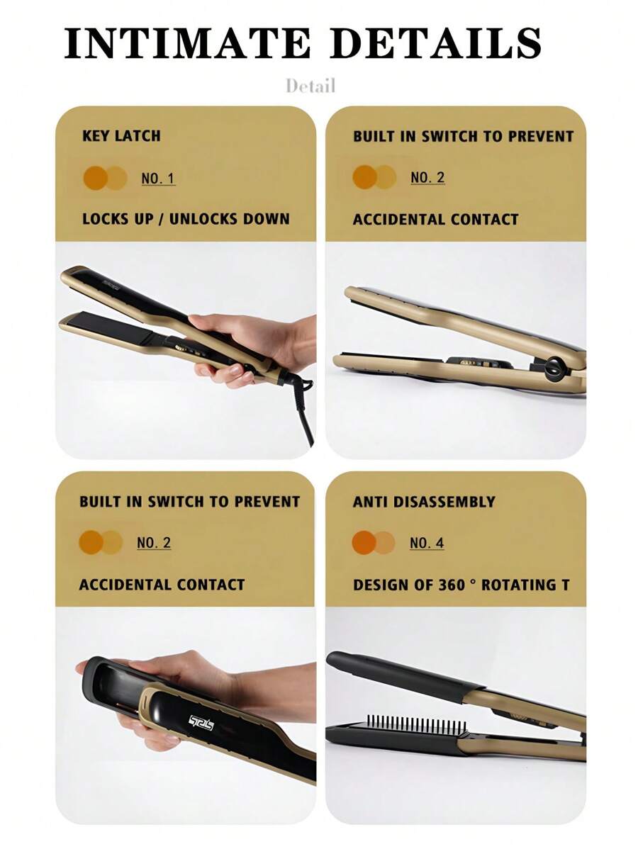* لوح من التيتانيوم اللامع لتصفيف ناعم وأنيق ولمسة نهائية براقة جداً