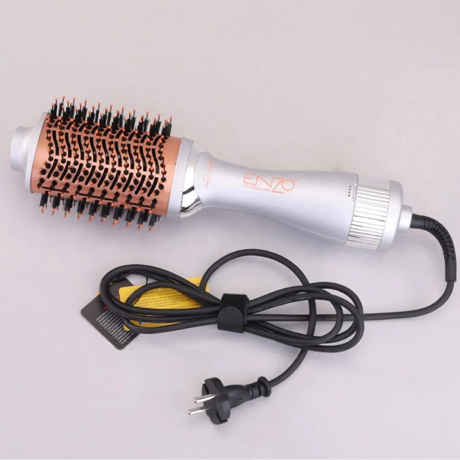 La ENZO Hot Air Brush Pro est une brosse soufflante professionnelle conçue pour sécher, lisser et coiffer les cheveux en un seul geste. Grâce à sa technologie Nano Titanium, elle assure une diffusion uniforme de la chaleur, permettant un coiffage rapide tout en respectant la fibre capillaire.